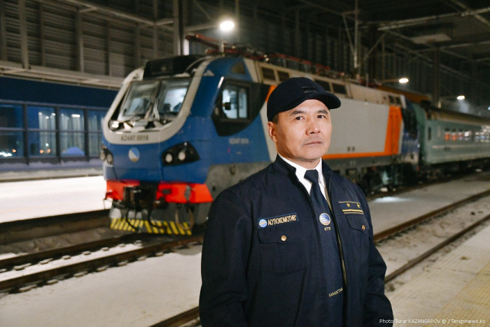 "Моя работа заключается в том, что я вожу пассажирские поезда на участках Астана - Есиль, Астана - Экибастуз, Астана - Кокшетау. Единственная работа в Казахстане, где нет женщин, чисто мужской коллектив. Это большая ответственность", - объяснил он.