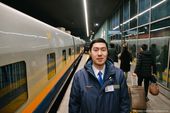 Старший дежурный вокзального комплекса Азамат Файзулла - первый, кого встречают ступившие на перрон столичного вокзального комплекса Нурлы жол. Поэтому сначала давайте познакомимся с ним.
