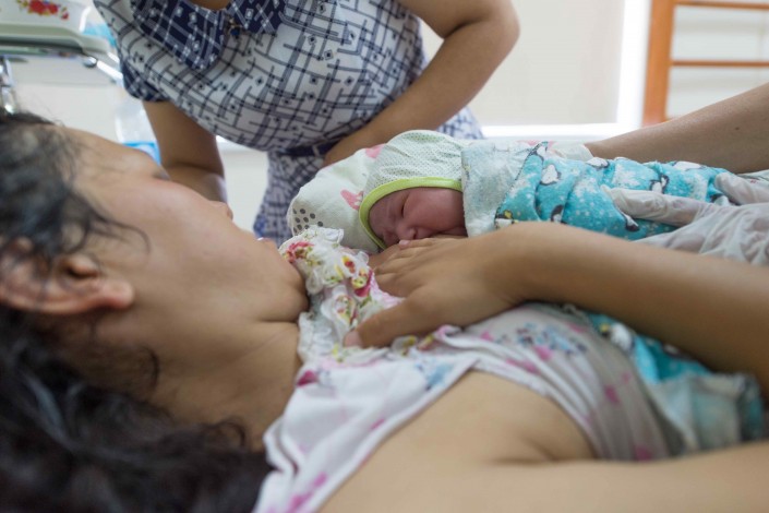 Первое фото на память - этой женщине повезло - не каждый день в родильную палату пускают профессионального фотографа.