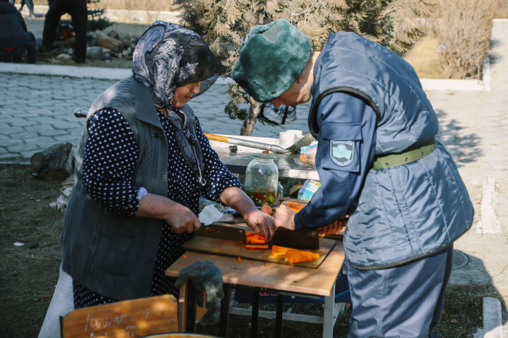 В оперативном штабе, организованном в Доме культуры в селе Сортобе, готовят еду для солдат.