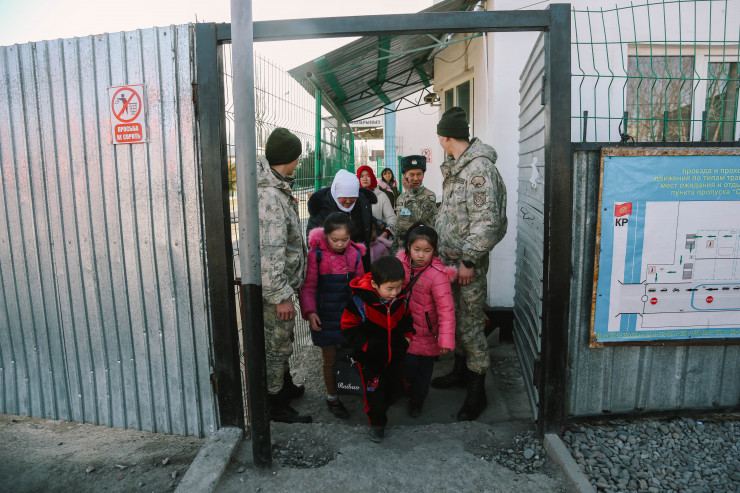 Женщины и дети уезжают к родственникам в Кыргызстан. Эти кадры сделаны нашим фотографом на пропускном пункте "Токмак".