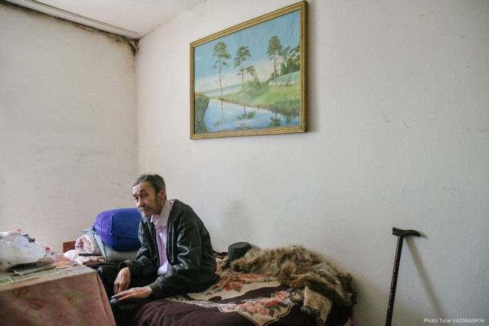 "Я Орынбек Балапанович Султанов. Родился в 1957 году. Живу здесь уже полтора года. Был дважды женат. Первая жена умерла. Вторая жена отказалась от меня, она была моложе меня. Потом я начал скитаться в одиночку, с квартиры на квартиру, жил в разных местах, везде условия разные, а тут нравится, неплохо, никто не беспокоит. Получаю пенсию по инвалидности, у меня вторая группа", - говорит Орынбек.