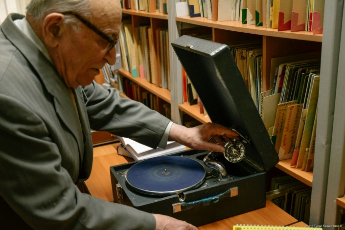 Здесь собрана огромная коллекция грампластинок. Ее хранитель - музыковед и филофонист Наум Григорьевич Шафер.