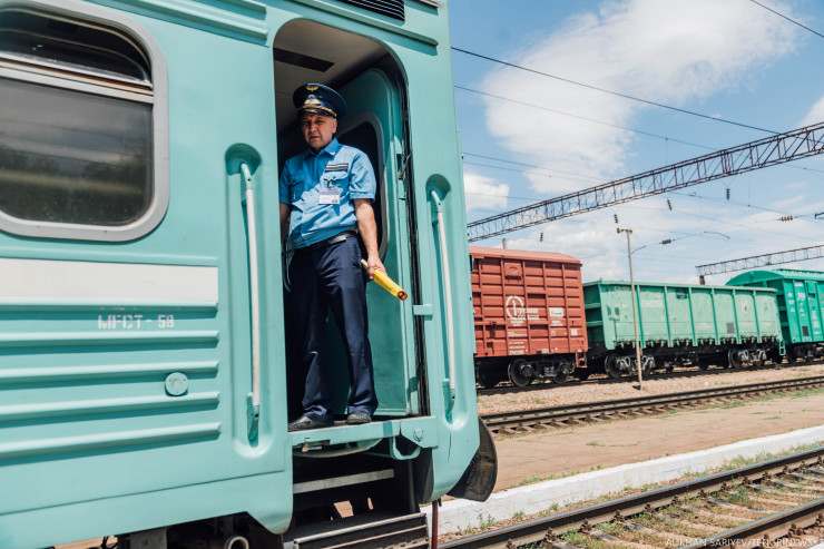 "Я родился на этой станции, вырос вдоль путей, и каждый день у нас за столом все темы были только про железную дорогу, сам я с детства мечтал стать начальником станции, как и мой дедушка. Работал и сигналистом, и составителем поездов, и дежурным по парку, и проводником практику проходил, весь запад и юг Казахстана объездил, много было всего, и каждая работа была по-своему интересна. Сейчас вот уже три года работаю начальником станции на своей родине. Супруга моя тоже из этой сферы".