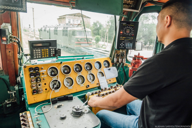 "А теперь я уже сам езжу по направлениям Алматы - Отар, Алматы - Шу, вожу зерно, уголь, разные цистерны. Машинист по нынешним правилам в пути должен не больше 12 часов находиться, и отдых обязателен. Вот мы сегодня в пять утра прибыли, а обратно в Алматы только сейчас поедем".