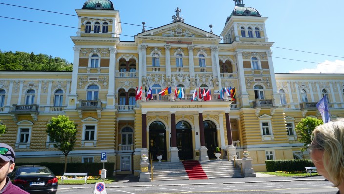 Здесь мы познакомились с Андреем Обозовым. Он директор представительства туристической компании. И, как выяснилось, переехал сюда из Алматы более 20 лет назад - в 1998 году. Тут он живет со своей семьей и детьми. Он ласково назвал Карловы Вары "городом пенсионеров", что немного отпугнуло нас, команду молодых и ищущих приключений журналистов. Но увидев, что, помимо пожилых людей, здесь столько же и молодежи, успокоились. Стало понятно, что, говоря о пенсионерах, он имел в виду режим и лечение. Как говорят местные, приезжать сюда желательно на три-четыре недели, потому что от двухнедельного лечения эффект будет не такой явный.