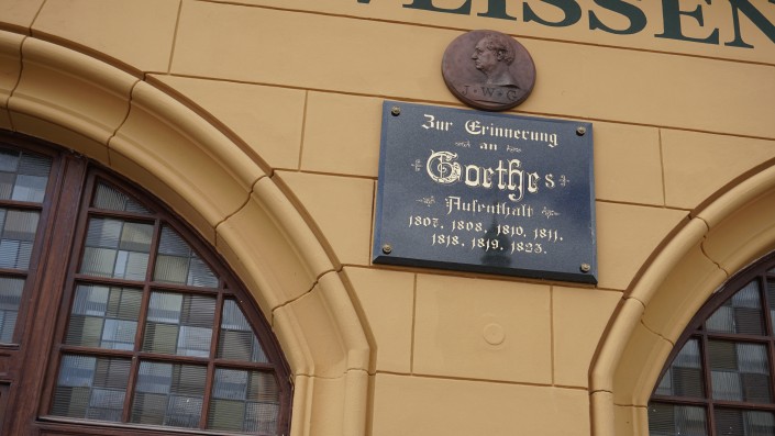 Иоганн Гете приезжал сюда 14 раз, столько же он был в Карловых Варах и Марианских Лазнях. На табличке у входа написано, в какие годы он тут бывал. Нужно учитывать, что пребывание было длительным - по 3-4 месяца.
