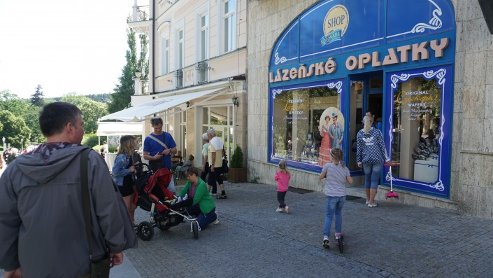 Тут же можно прогуляться по парку и отведать лазенских оплаток (местных вафель). Как говорят местные гиды, приезжать и лечиться гораздо дешевле в Марианские Лазне, Локет и прочие небольшие курорты, а Карловы Вары более крупный курорт, который знают многие.