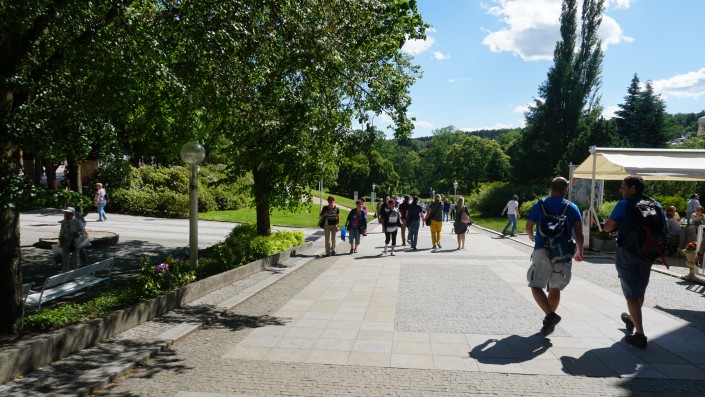 Еще один небольшой курорт в 40 минутах от Карловых Вар - Марианские Лазне (Мариенбад в прошлом). Туристы здесь неспешно прогуливаются вдоль колоннады, попивая целебную воду из своих кружек.