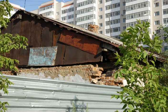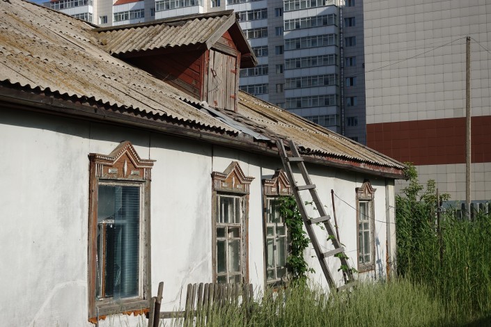 С одной стороны выросли новостройки, так что слободские избушки оказались почти прижаты к ним.