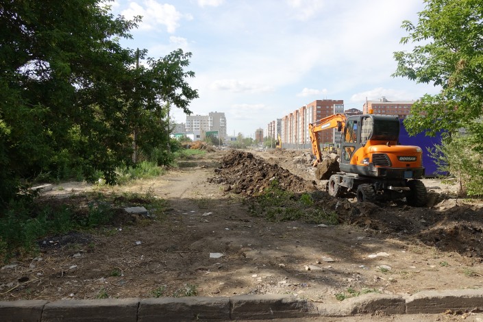С другой стороны частных домов сейчас идет активная стройка, делают дорогу.
