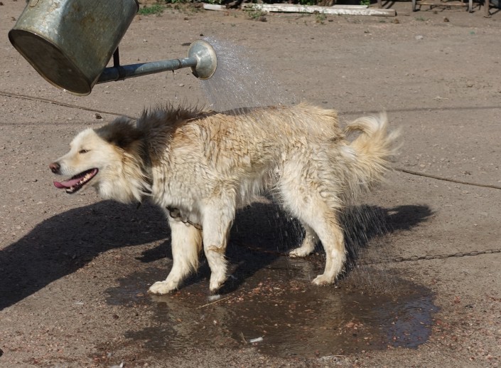 От такого душа в жаркий день Умка, кажется, в восторге.