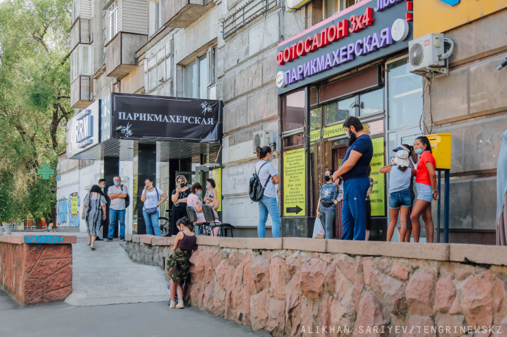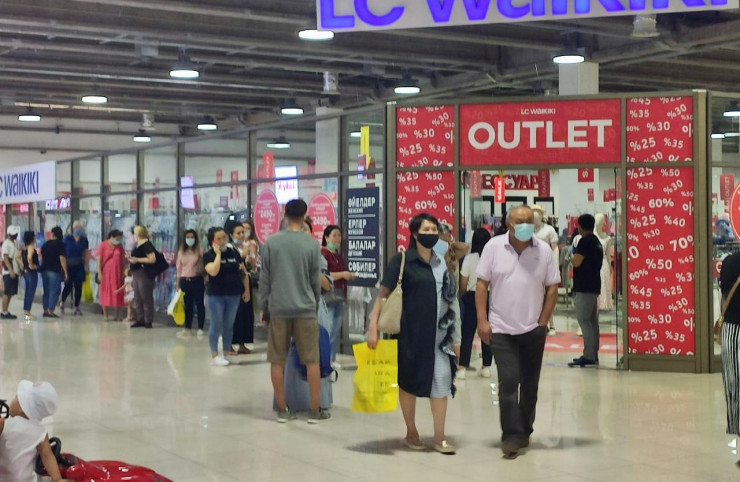 В первый же день послаблений в Алматы наблюдались очереди в один из городских ТРЦ.