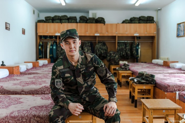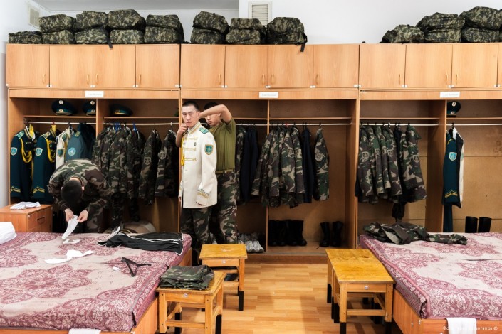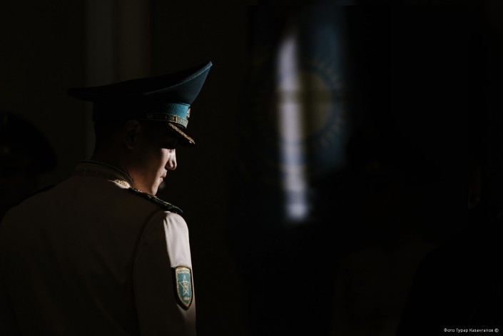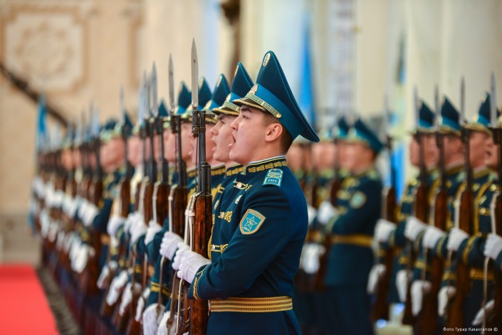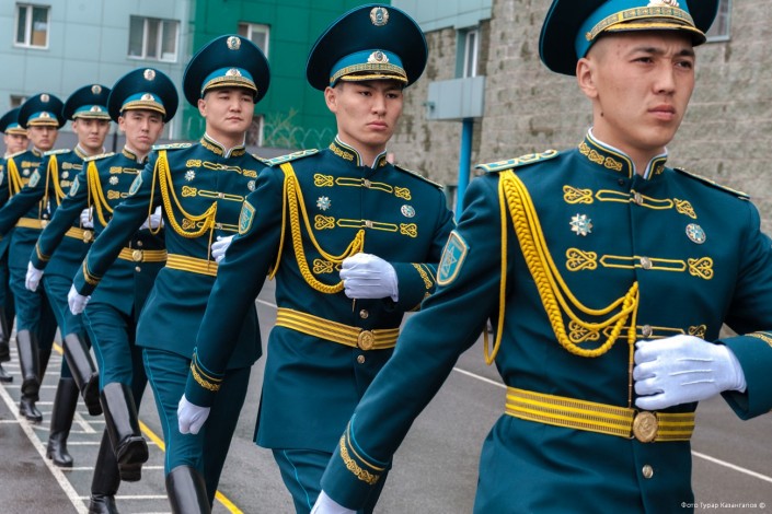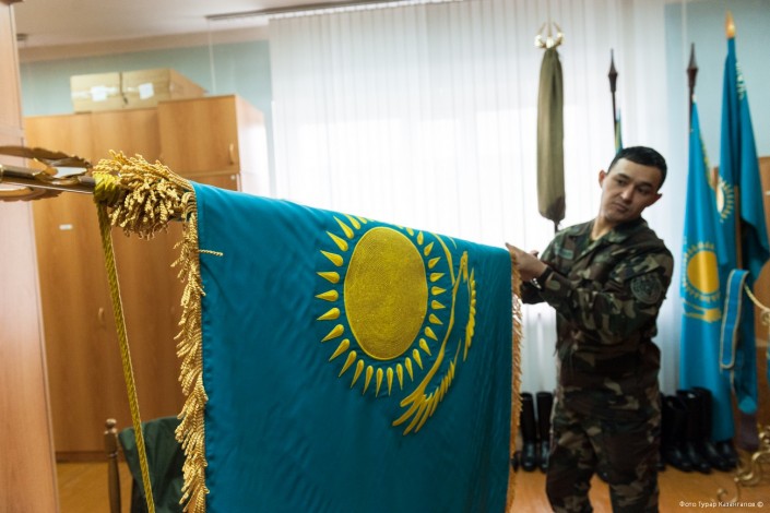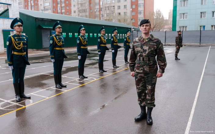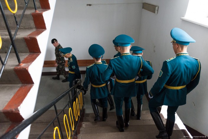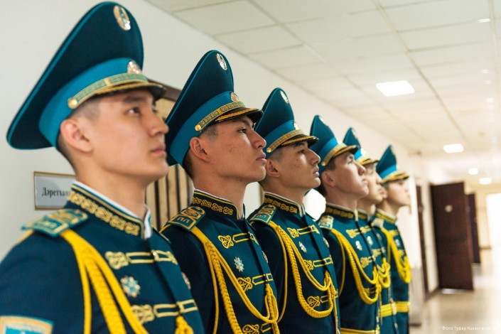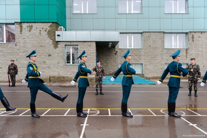 11 часов утра. В воинской части Президентского полка "Айбын" немноголюдно. Одна группа  военнослужащих выехала на репетицию по случаю подготовки к показательным выступлениям, других откомандировали в Алматы для участия в церемониальных мероприятиях к 7 Мая и Дню Победы. Оставшиеся готовятся к торжественному приему в Акорде.