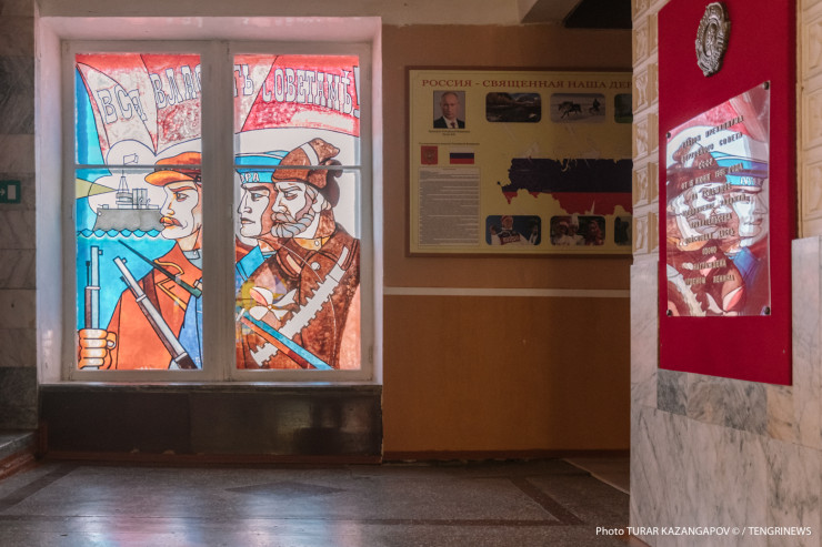 Чистота и порядок. Ну а как иначе? Ведь на вас смотрят сразу два президента - с одной стороны портрет Владимира Путина, с другой - Касым-Жомарта Токаева.