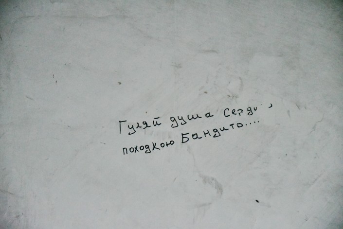 Кстати, в соседней уже выселенной двухэтажке тоже можно заметить одну надпись.