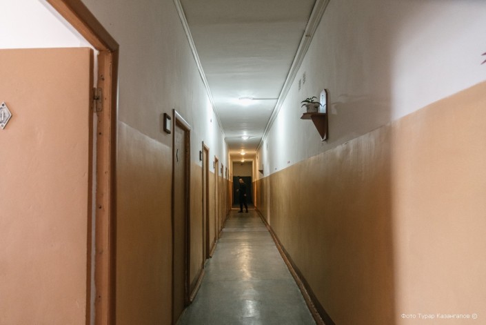 На втором этаже бывшей медсанчасти предусмотрены комнаты для отдельного контингента. В одной из них содержатся две женщины. Одну перевели сюда из отряда в связи с беременностью. Вторая осужденная - Жанар Толыбаева. Она отбывает здесь наказание со своим двухмесячным ребенком.