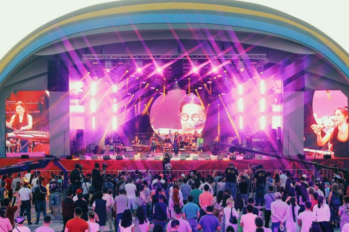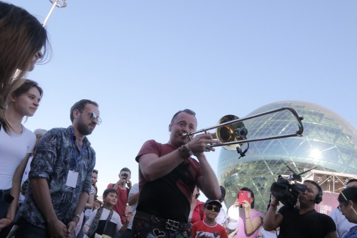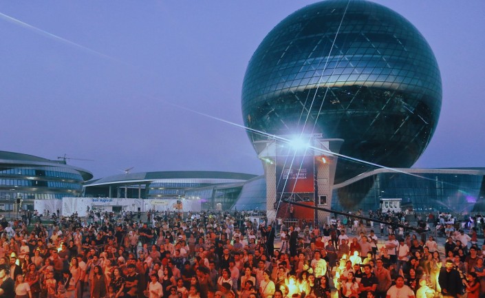 Фестиваль этого года прошел на территории EXPO у подножия сферы "Нур-Алем" на левом берегу столицы. Летняя сцена отбрасывала просторную тень, фонтаны неподалеку веяли прохладой.