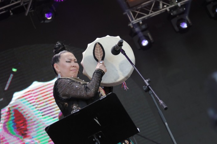 Как и большинство исполнителей фестиваля, Чылтыс - мультиинструменталист. Она обладает редким даром женского горлового пения, а также играет на барабане, варгане и на шорийском варианте домбры.