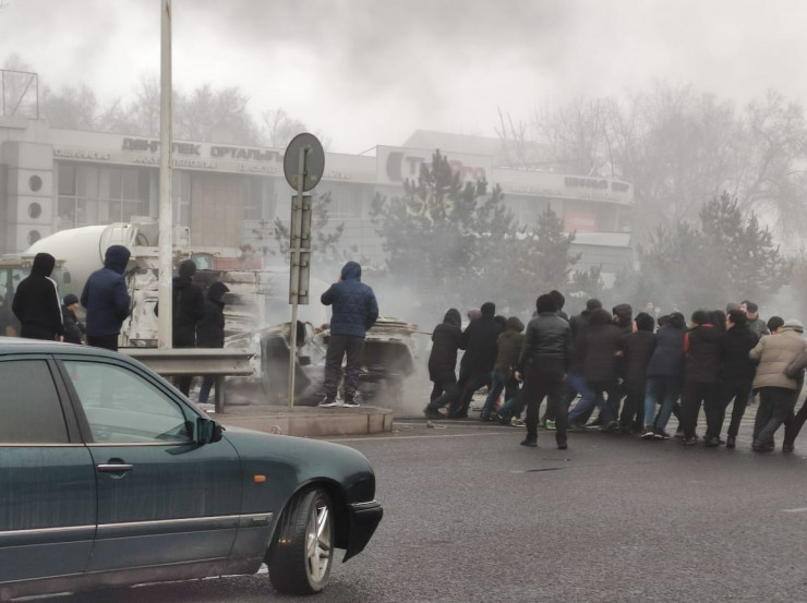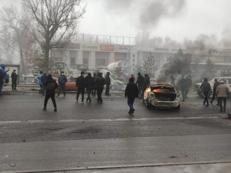 В ходе демонстраций в Алматы сожгли десятки автомобилей, разбиты витрины магазинов, передает корреспондент Tengrinews.kz.