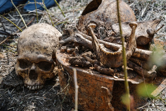 В земле попадались бинты, патроны и другие мелкие вещи.