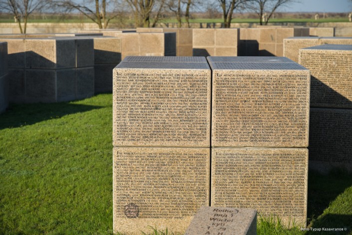 Прямо напротив военно-мемориального кладбища советских солдат расположено такое же кладбище солдат, воевавших за фашистскую Германию. И примечательно то, что немецкие захоронения находятся прямо на той земле, где когда-то фашистские войска сожгли две местные деревни.