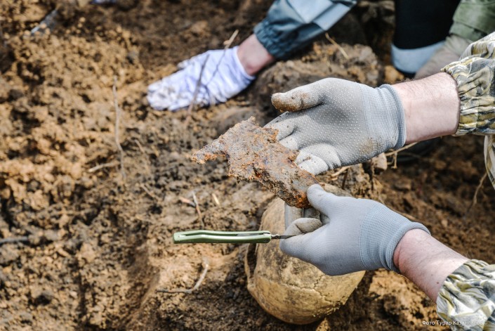 Поисковики продолжали аккуратно снимать землю слой за слоем.