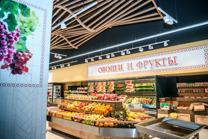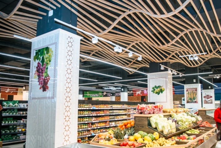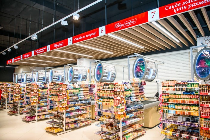 В новом магазине "ВкусМарт" в ТРЦ Saryarqa продуманный и эргономичный дизайн для наибольшего удобства покупателей. Каждая секция имеет свои отличительные черты, поэтому гостям магазина здесь так легко ориентироваться и выбирать для себя продукты.