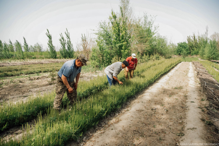 А между тем регион славился своими рощами и лесами. Здесь и сейчас есть удивительные питомники, где выращивают в том числе и редкие породы деревьев. В одном из них мы побывали (к слову, ехали мы туда по очень плохой дороге - прим. авт.). Экскурсию нам провел Бекболат Алтаев, он руководит лесным питомником Чиликского лесхоза.