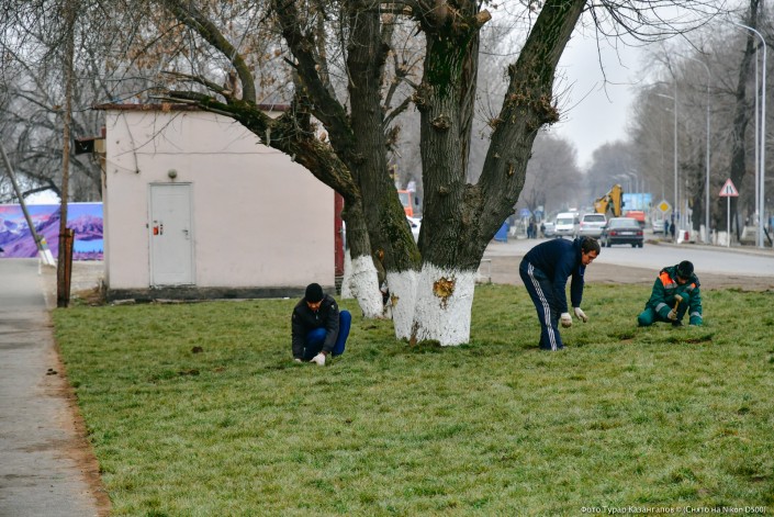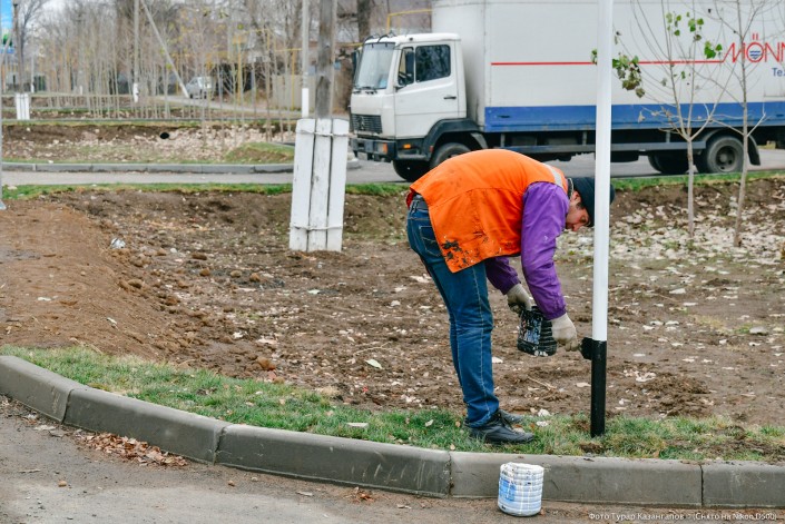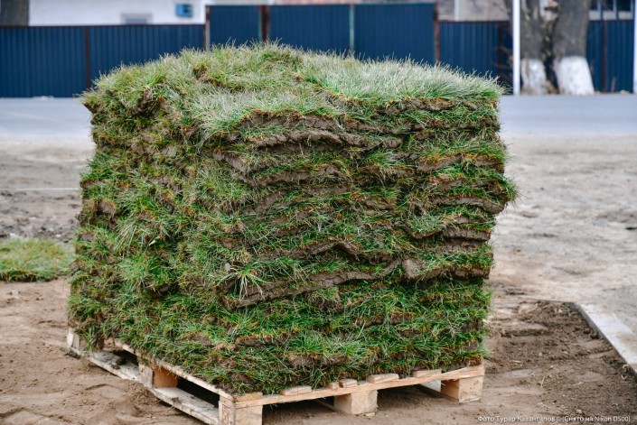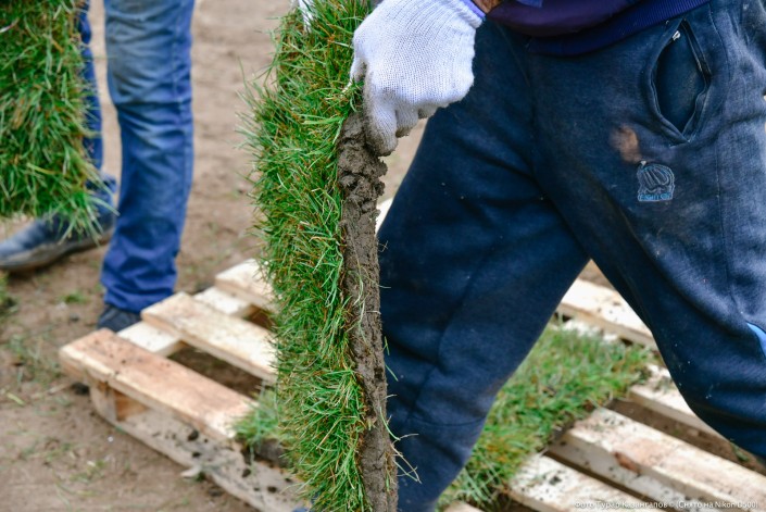 Как рассказали рабочие, выращивают этот газон неподалеку отсюда.