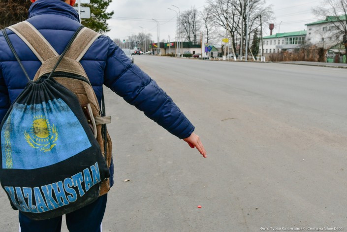 Желающие уехать на попутке в ближайший город Каскелен здесь используют характерный жест.