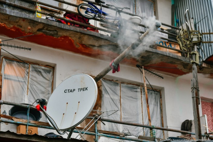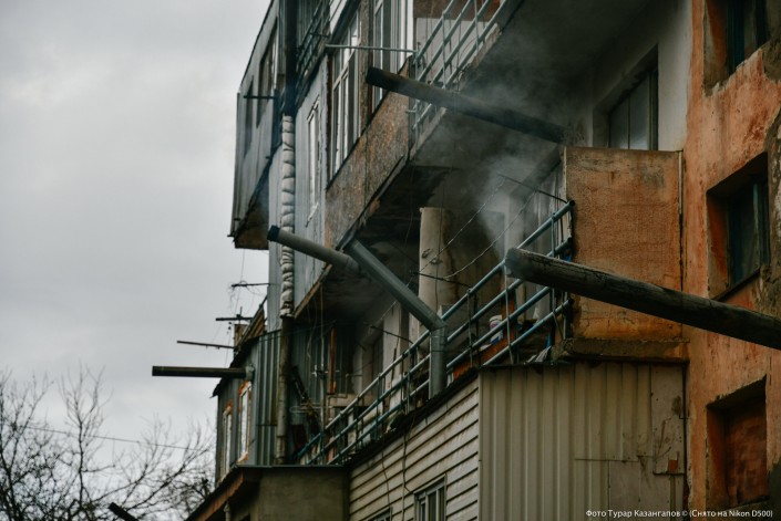 Во всей округе здесь обогреваются газом, но в этом многоквартирном доме для этих целей используют уголь и электричество.