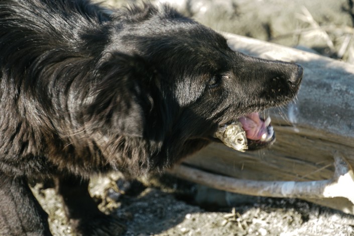 Собака на берегу Урала продолжала носить в пасти рыбу. Съедала ее и бежала опять к реке.