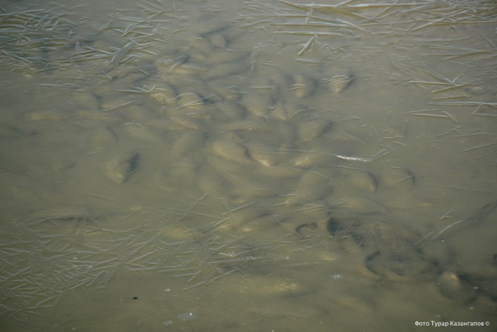 "Эта рыба осталась подо льдом на мелководье, она не успела уйти вглубь", - предполагает Бостан Сулейменов.