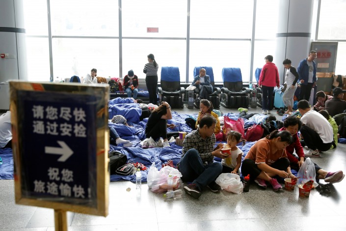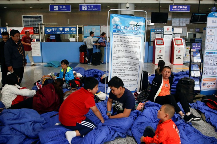 Аэропорт Цзючжайгоу, расположенный недалеко от пораженного землетрясением горного района. Люди ожидают возобновление полетов самолетов.