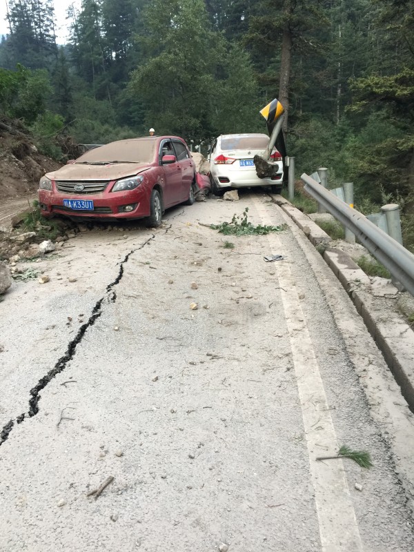 Трещина на дороге после землетрясения в округе Цзючжайгоу, префектура Нгава, провинция Сычуань.