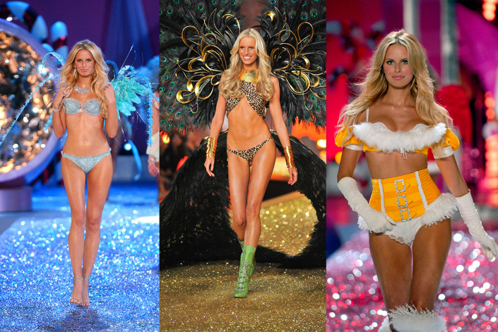 Хайди Клум - легендарный "ангел" показов бренда. Немецкая модель дебютировала в 1997 году и участвовала в ежегодных шоу до 2009 года. Хайди Клум три раза дефилировала с ювелирными комплектами бра из серии Very Sexy Fantasy Bra.