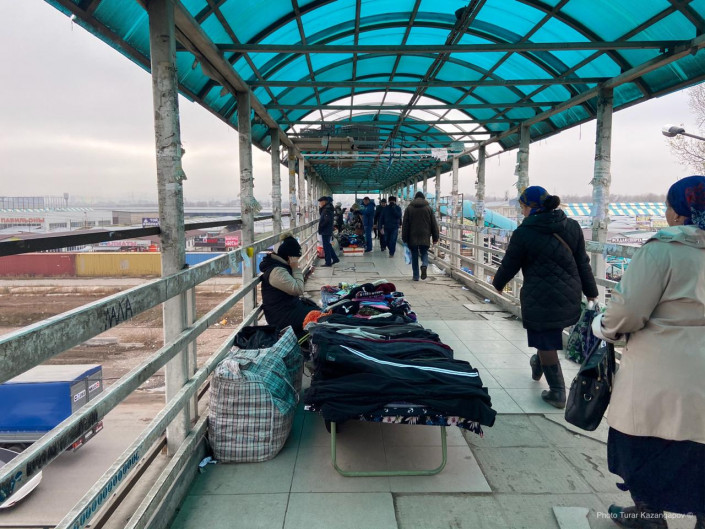Из-за того, что переход ведет прямо на территорию "Алтын орды", он больше напоминает некое продолжение рынка. То есть при желании не посещать базар вы все равно в него попадете. Так как этот переход - единственная возможность перейти автомобильную дорогу.