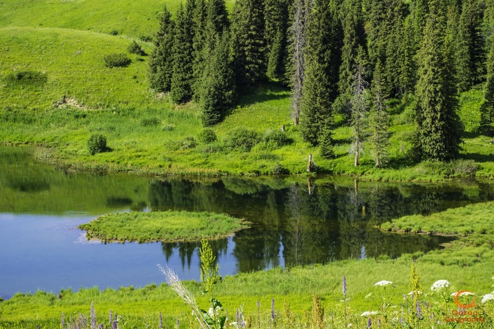 Озеро в горах. Местность Каркара на юг от города Кегень. Автор - Андрей Гундарев