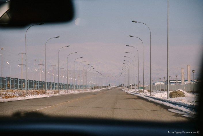 Две башни впереди - это граница, которая, по сути, разделяет Казахстан и Китай.