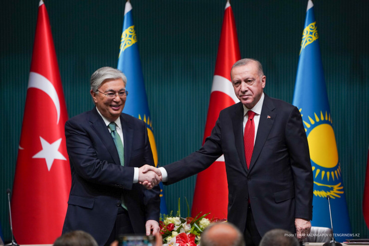 "Энтузиазм и упорство уважаемого Токаева в становлении Нового Казахстана вызывают похвалу. Еще раз подчеркиваю, что мы готовы нести ответственность за стабильность, спокойствие и безопасность наших казахстанских братьев. Думаю, что как в политической, так и в торговой, военно-экономической и культурной сферах мы продолжим наше сотрудничество и вместе сделаем шаг в будущее", - сказал Эрдоган.