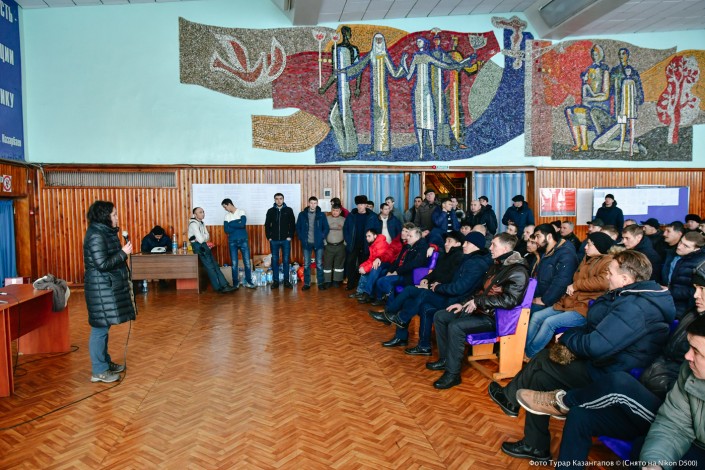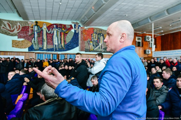 "Извините за глупый вопрос, но расскажите, пожалуйста, про свои тормозки...", - в итоге произношу я. Мой вопрос вызвал бурю смеха в зале. Но глаза шахтеров все равно говорили о том, что они еще не приняли нас. Они ждали не столько вопросов, а честной и открытой беседы.