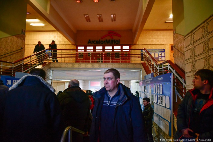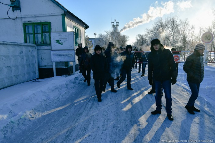 Морозное утро в Шахтинске. Стоим у КПП на входе в шахту "Казахстанская", охрана отказывается пускать нас внутрь.