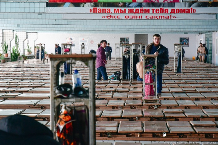 Утро возле ворот шахты "Казахстанская". Идет четвертый и, как позже выяснится, последний день забастовки. К нам навстречу выходят несколько десятков шахтеров. Мужчины окружают нас и заводят в здание. Пытаюсь в этой толпе не потерять глазами своего фотографа. Через несколько минут мы уже в актовом зале и на нас смотрят глаза двухсот человек. Мне в руки дают микрофон. Тишина. Нужно что-то говорить. Мне кажется, что мой голос дрожит. В голове только одна мысль: "Не ляпнуть бы чего-нибудь лишнего, не усугубить бы ситуацию". "Извините за глупый вопрос, но расскажите, пожалуйста, про свои тормозки...", - в итоге произношу я. По залу проносится волна смеха. Суровые, но спокойные лица мужчин расплываются в улыбках. А дальше - душевные беседы, анекдоты про тещ и горячий шахтерский чай. Корреспондент Tengrinews Айгерим Абилмажитова и фотограф Турар Казангапов о дне, проведенном в стенах бастовавшей шахты.
