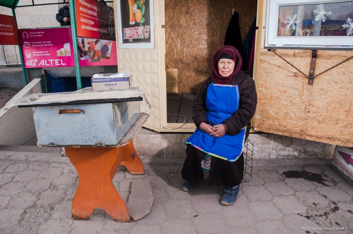 "Пенсионный возраст еще не подошел. Положение сложное. Живу одна, воспитываю внучку. Зарабатываю здесь 1 500 тенге в день", - еле сдерживая слезы, говорит женщина, поясняя что ежедневно 500 тенге ей приходится тратить на дорогу из Толе би и обратно.