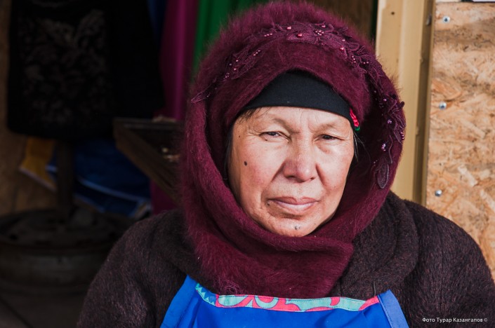Но новогоднее, а лучше сказать постновогоднее настроение в эти дни не у всех. Гульбар Маринусова продает самсу на рынке. Штука - 100 тенге. Сама живет в соседнем поселке Толе би.