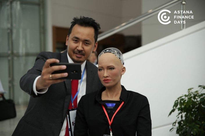 Участие в церемонии открытия гиноида Софии без преувеличения свело аудиторию с ума: за селфи с самым похожим на человека "не-человеком" стояла длинная очередь. Сама София, очевидно, подустала от внимания публики, но в селфи не отказывала никому.