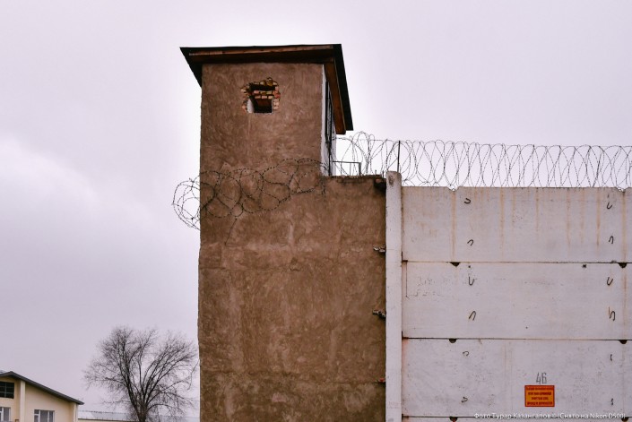 Надпись на здании, находящемся на территории одной из тюрем: "Работать ударно, дерзать, творить".