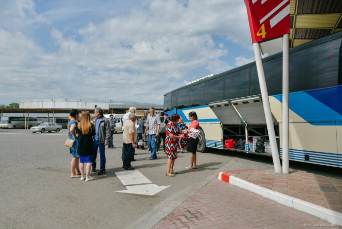 Те же карты Google показывают время в пути - около двух часов. На деле все оказывается дольше, ведь преодолеть нужно сразу две границы - российскую и казахстанскую, то есть два раза нужно пройти одну и ту же процедуру: сначала казахстанский пограничник зайдет в салон автобуса, пересчитает пассажиров; потом людей попросят с вещами на выход; далее все дружно выстроятся в очередь на паспортный контроль; и только после того, как все пассажиры расскажут о цели своего визита в соседнюю страну, их снова запустят в автобус. Правда, через какое-то время все то же самое повторится, но уже с участием российских пограничников.