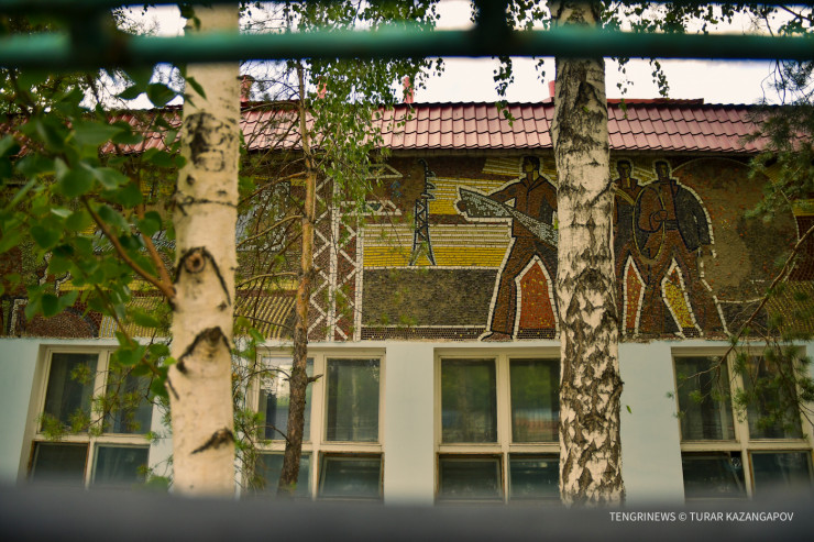 "Та, что справа, называется "Космос". Здесь изображены мать Земля, невесомость, космонавты в скафандрах и так далее. Само здание было облицовано, однако мозаику удалось сохранить", - рассказывает об идее работы Темиртас.